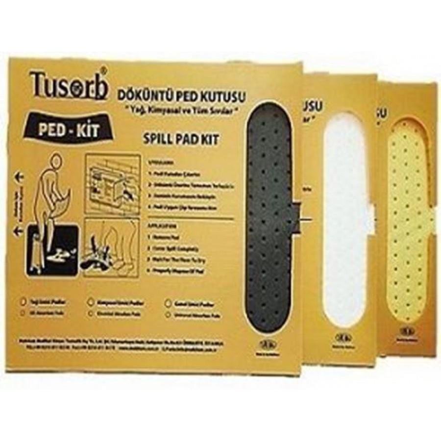 • Ped-Kit (döküntü ped kutusu) Büyük boyu 43cm x 53cm x 5cm ebatlarında, plastik kutu şeklinde, çift taraflı cırtlı bant ile istenilen yere kolayca monte edilebilir özelliktedir. Hafif ve oldukça kullanışlıdır.