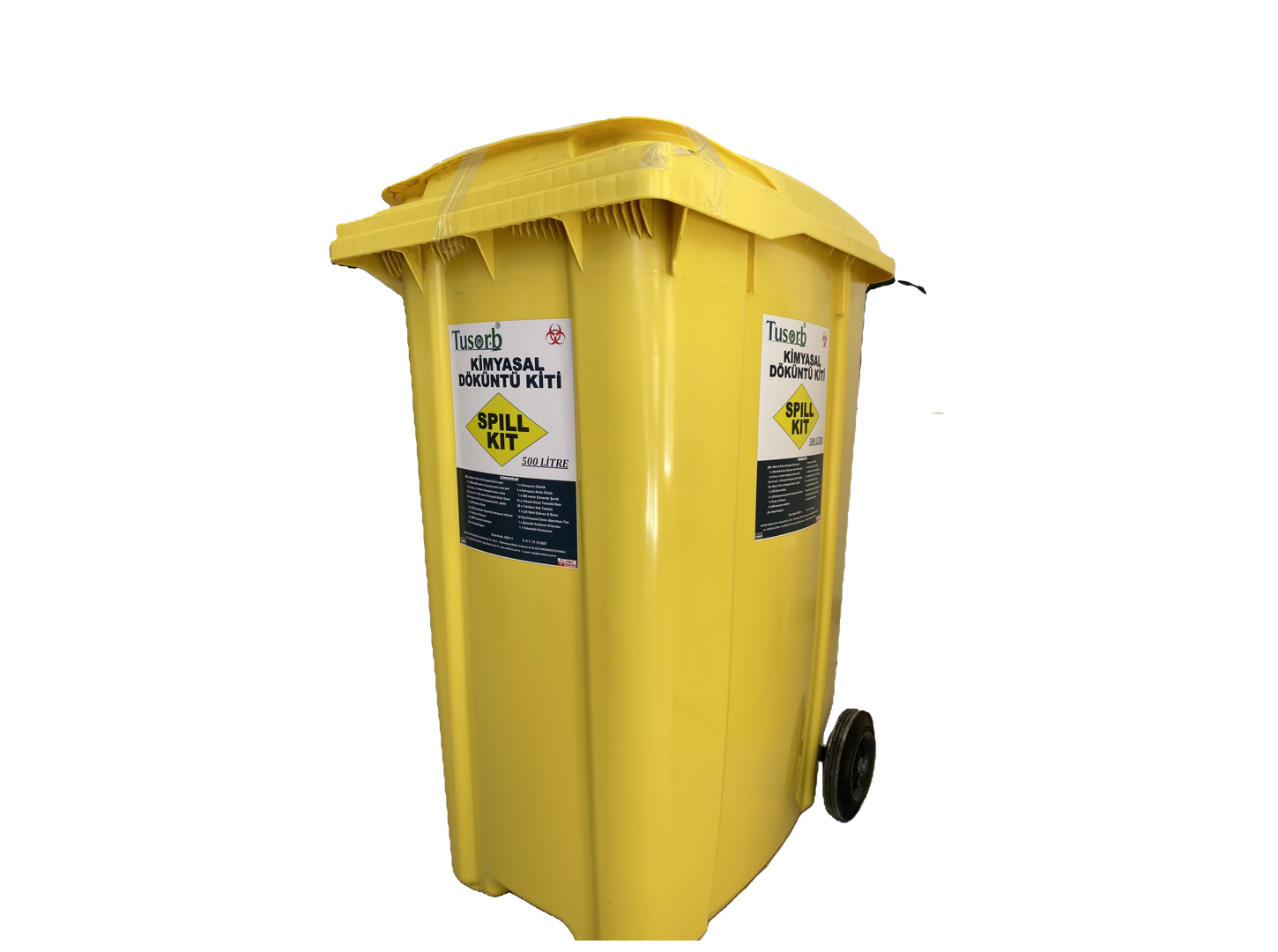 Ulusal ve Uluslararası standartlara uygun kolay taşınabilir tekerlekli konteyner içerisinde bulunan tüm malzemeler 500ltlik kimyasal döküntüleri temizlemek için hazırlanmış geniş kapsamlı bir kittir. orta ve büyük ölçekli işyerinde orta ölçekli sanayi merkezlerinde, kimyasal depolama alanlarında ve lojistik merkezlerde kullanılır.
