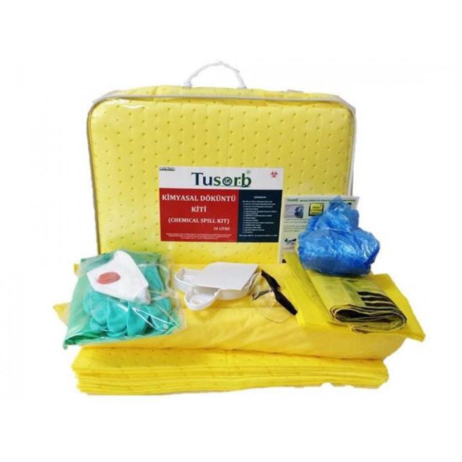 Kimyasal döküntüleri güvenli bir şekilde temizlemek ve bertaraf etmek için kullanılan ulusal ve uluslararası standartlara uygun geniş kapsamlı bir kittir. KİT: Kimyasal emici absorban maddeler, kişisel koruyucu ekipmanlar ve tehlikeli atık torbaları ile kimyasal döküntü,sızıntı ve damlamalara karşı etkili temizlik sağlayan malzemelerin hepsini çanta içerinde bir arada bulundurur . Kulplu ve kolay taşınabilir olması özelliğiyle acil durumlarda anında müdahale edilebilecek şekilde tasarlanmıştır.